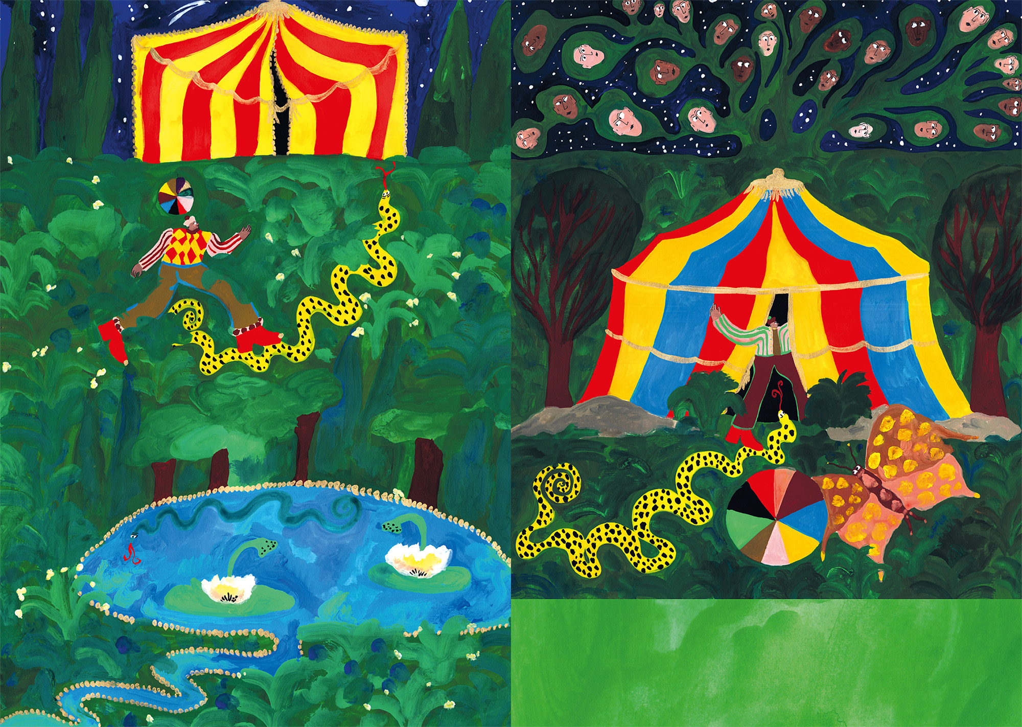 The dreamy silhouettes dare us to solve their visual riddles, invite us in exploring circus marquees or endless buildings.